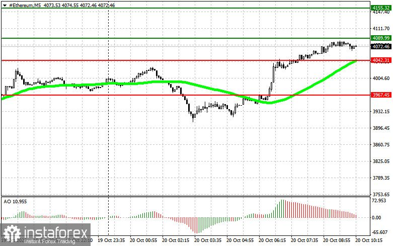 • 情境1:我計劃今天在接近4,089美元的進場點買入以太坊,目標價位是4,155美元。在接近4,155美元時,我將退出該買入交易,並立即在回調中賣空。在買突破前,確認50天移動平均線低於當前價格且Awesome Oscillator為正值。
