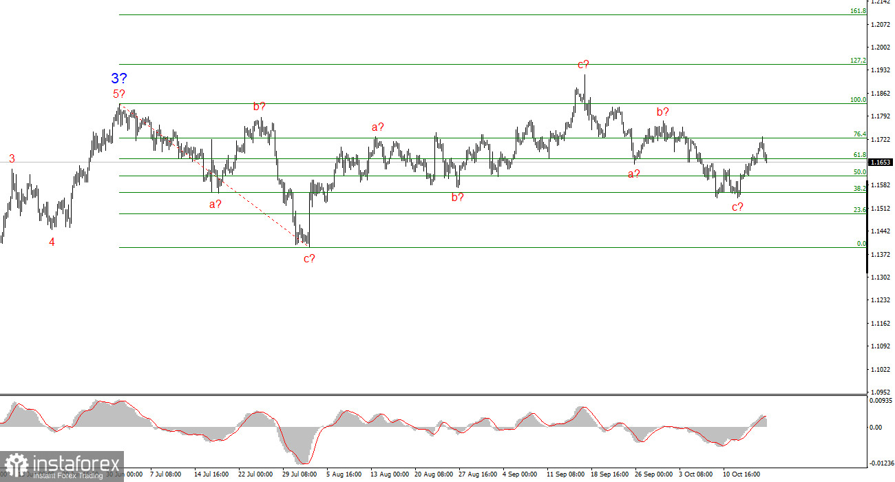 Следующая неделя для евровалюты не будет ни значимой, ни важной. Весь 2025 год европейская валюта просто плывет по течению. Хедлайнером рынка остается американский доллар, и именно он растет или падает, а остальные валюты торгуются в полной зависимости от него. На текущий момент неопределенности на валютном рынке очень много. Волновая разметка рисует только коррекционные трехволновые структуры, которые слабо помогают в прогнозировании, потому что любая коррекционная структура в любой момент может принять более протяженный вид. Сейчас мы увидели нисходящую трехволновую структуру, поэтому можно было бы ожидать повышение инструмента в рамках аналогичной восходящей. Но уверенности в этом нет.
