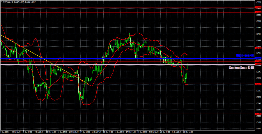 Торговые рекомендации и разбор сделок по GBP/USD на 23 октября. Фунт делает второй шаг к тренду?