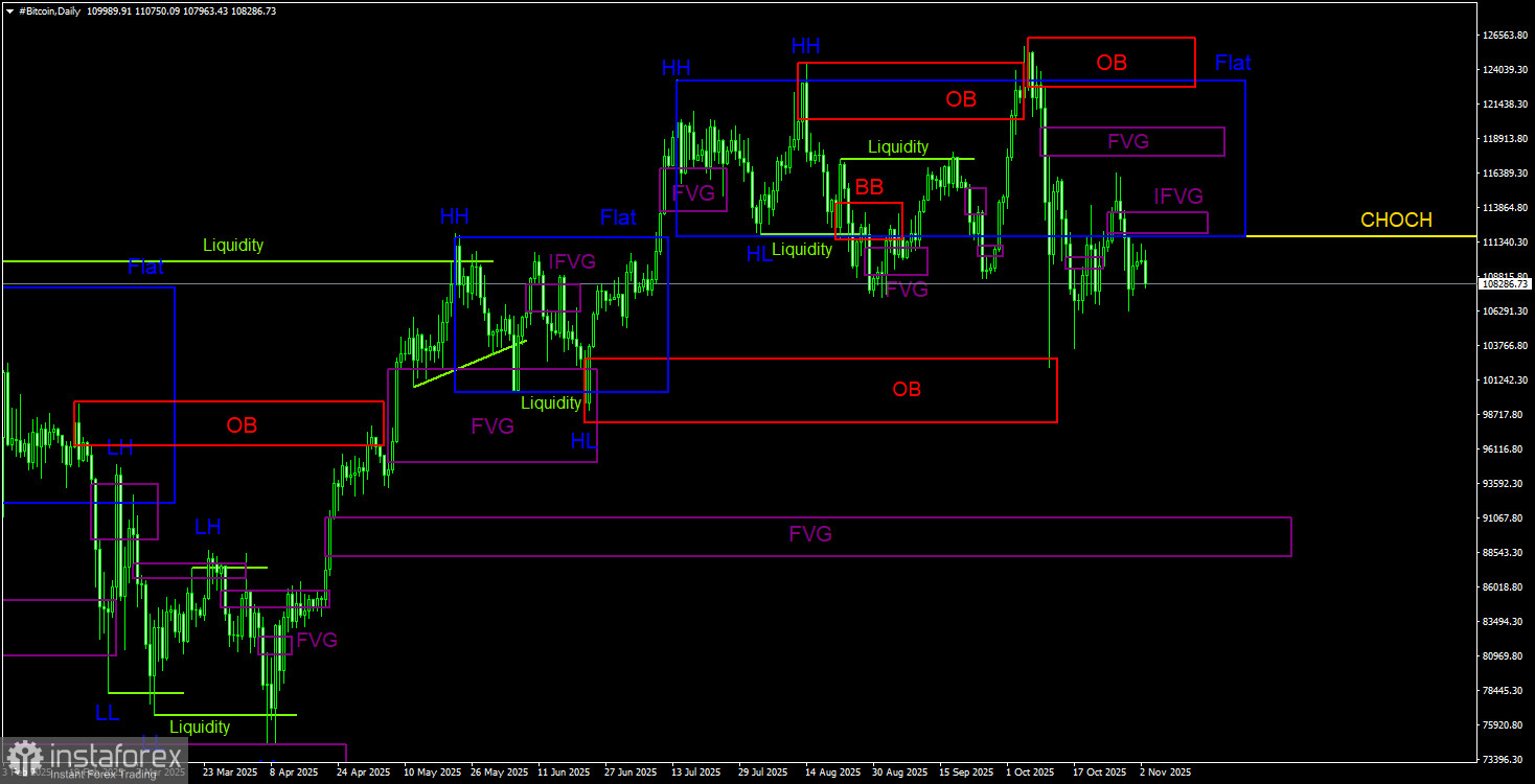 Торговые рекомендации по Биткоину(Bitcoin) на 3 ноября по системе ICT