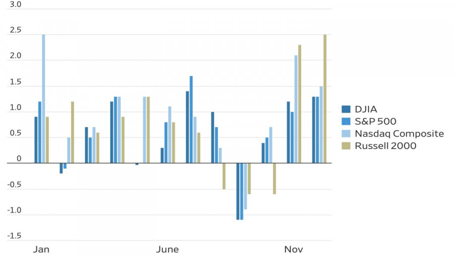 К тому же ноябрь является исторически сильным для американского рынка акций. С 1928 по его итогам широкий фондовый индекс в среднем поднимался на 1%. Некоторые его аналоги выглядели еще лучше.