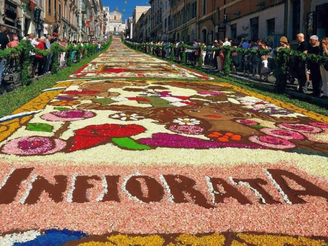 Маленький умбрийский город Spello славится своими цветочными фестивалями Infiorate di Spello, которые проходят в июне. В узких каменных улочках жители выкладывают узоры из лепестков, создавая картины на религиозные и исторические темы. Цветочные ковры тянутся вдоль домов, превращая город в ароматный музей под открытым небом. Для украшения используется более 60 видов растений, собранных вручную. Когда по улицам проходит процессия Корпус Домини, цветы осыпаются под ногами, словно благословение самой природы.