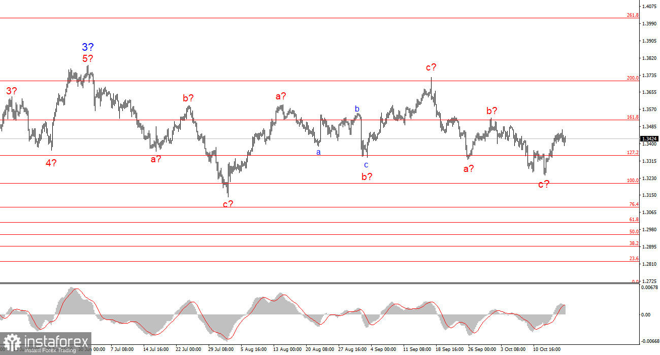Волновая картина инструмента GBP/USD видоизменилась. Мы продолжаем иметь дело с повышательным, импульсным участком тренда, но его внутренняя волновая структура приобретает более сложный вид. Волна 4 принимает трехволновой вид, и ее структура получается в разы протяженнее, чем у волны 2. Очередная понижательная трехволновая структура предположительно завершена. Если это действительно так, то повышение инструмента в рамках глобальной структуры волн может продолжиться с первоначальными целями около 38 и 40 фигур.