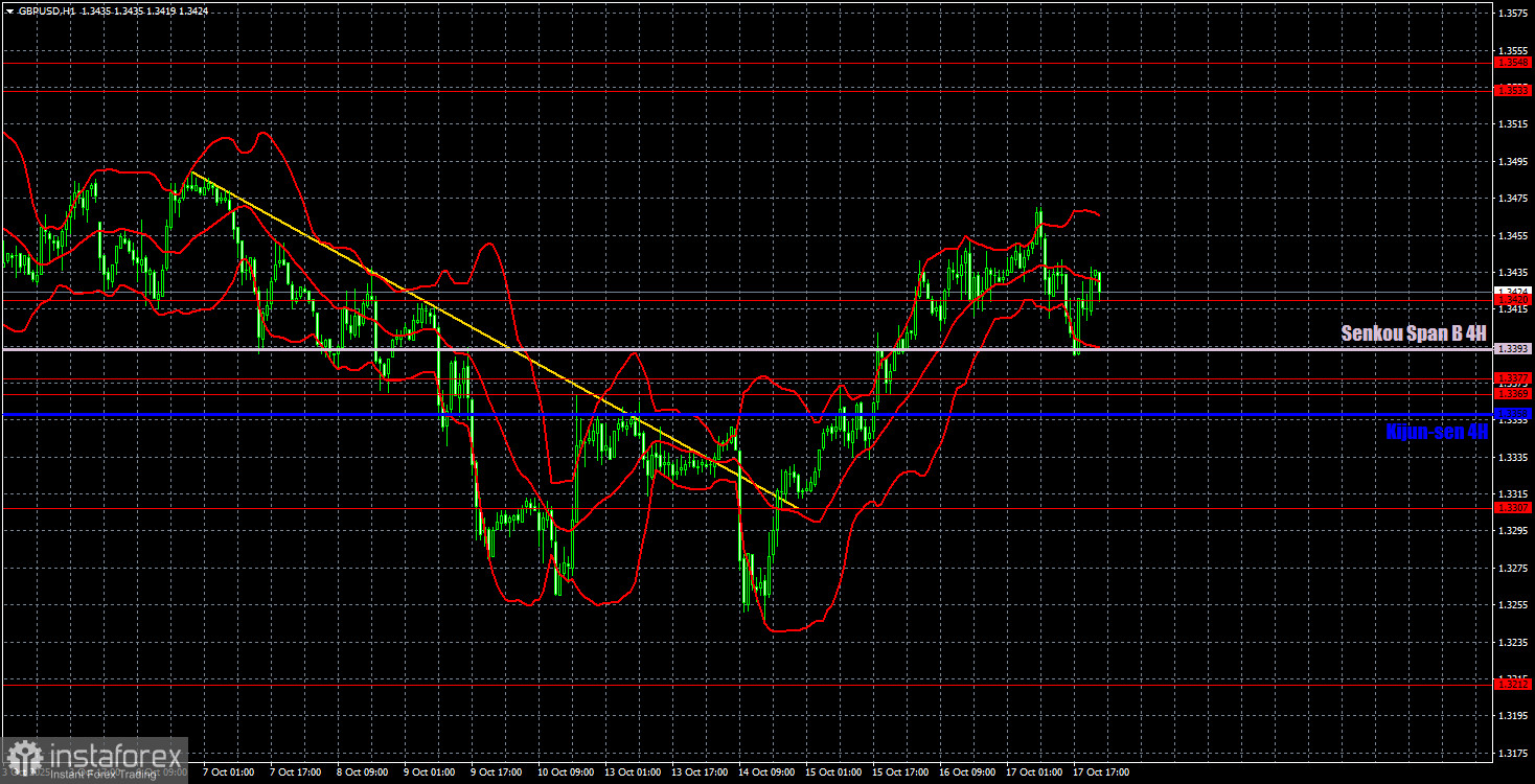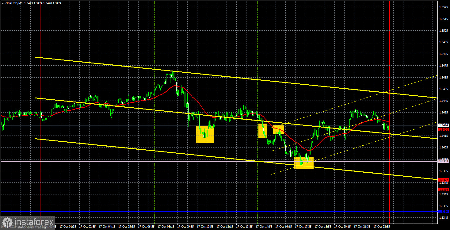 Торговые рекомендации и разбор сделок по GBP/USD на 20 октября. Фунт сохраняет восходящий настрой.