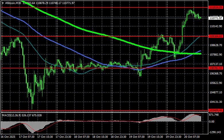 Биткоин уперся в $111 600, и немного откатил вниз в районе $110 700, но в целом, пока рынок сохраняет устойчивость, и если покупатели вернуться на американской сессии, то не исключено, что мы увидим новую волну роста биткоина дальше в район $113 800.
